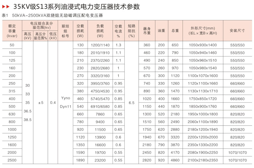 产品名称: 35kV级S13油浸式电力变压器