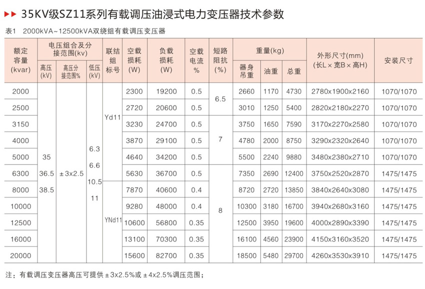 产品名称:35kV级SZ11油浸式有载调压变压器