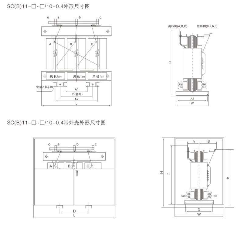保护外壳对变压器作进一步的安全保护,防护等级有IP20 、IP23 等,外壳材料有冷轧钢板,不锈钢板等供用户选择低压出线用标准母线排出线,侧出线和顶出线均可,也可为用户设计特殊出线方式。