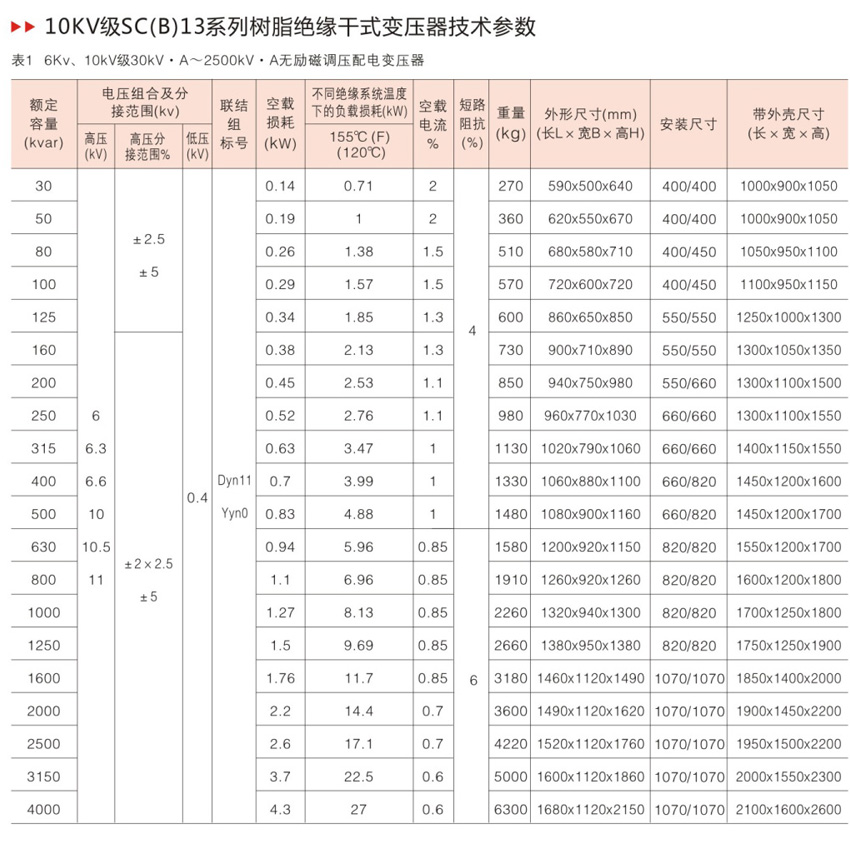 树脂绝缘干式变压器是我公司引进国外先进技术,自主开发了SC9 、SCB9系列以及SC10 、SCB10 系列带填料薄绝缘干式变压器,由于线圈被环氧树脂包封,所以难燃,防火、防爆,免维护,无污染,体积小,可直接安装在负荷中心。同时科学合理的设计和浇注工艺,使产品局部放电量更小,噪声低,散热能力强,在强迫风冷条件下可以在140 %额定负载下长期运行,并配有智能温控仪,具有故障报警,超温报警,超温跳闸以及黑闸子功能,并通过RS485 串行接口与计算机相连,可以集中监视和控制。