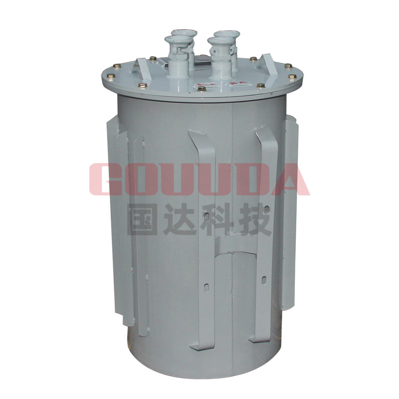 变压器壳体: 由钢板焊接制作成形, 壳体可经受8 Pa 气压力的液压试验; 箱盖与箱岩之间的接触面符合隔爆要求; 箱盖由钢板制成, 上面有电缆进出线喇叭嘴, 出线套内面放置橡胶垫圈, 电缆穿过橡胶垫圈, 旋紧出线圈后, 可借橡胶垫圈压紧电缆以确保密封,所选用的电缆外径应与橡胶垫圈尺寸对应,保证电缆能被压紧完全密封,以保证防水和防护性能;