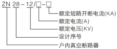 ZN28系列真空断路器为额定电压12kV,三相交流50Hz的高压户内开关设备。该产品符合GB1984-89标准,该产品总体结构为开关本体与操动机构一体安装和开关本体与操作机构分离安装两种形式。一体式结构即为ZN28-12;分体结构为ZN28A-12型,适用于各种固定式开关柜,如GG1A(Z),XGN2A10(Z)等。