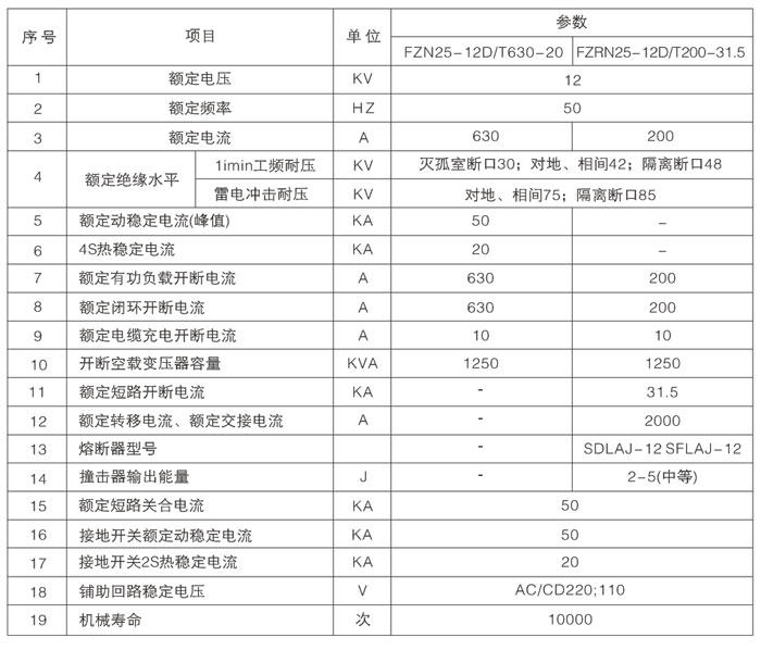 FZN25/FZRN25型真空负荷开关组合电器,使用三相交流50Hz环网或终端供电和工业用电设备中,作负荷控制和短路保护之用,负荷开关分合负荷、闭环电流、空载变压器和电缆充电电流。组合电器可以开断直至额定短路电流的任何电流。采用直动式隔离断口和真空孤室联动。具有手动和电动功能。